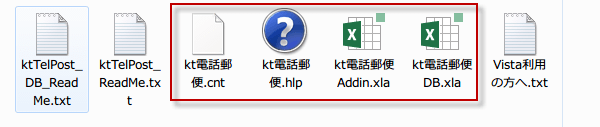 「kt電話郵便Addin.xla 」「kt電話郵便DB.xla」の2つをそれぞれ登録します。