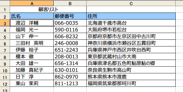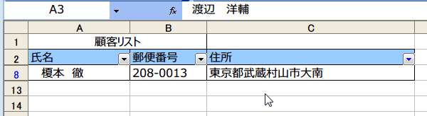 今回は、名簿を対象にオートフィルタオプションを使ってみます。