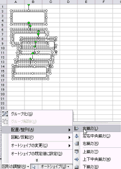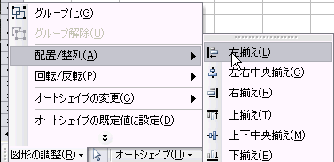 オートシェイプのコンテキストメニューには配置や整列、回転、反転エントリーなどの機能が用意されています。