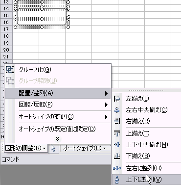 ツールバーから、図形の調製をクリックして、配置/整列を選択後、