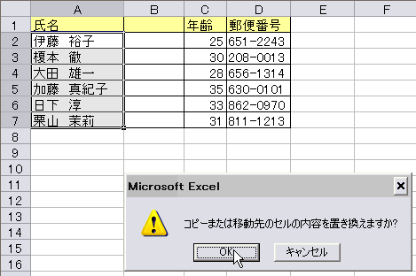 すると、セルの内容を置き換えますかと聞いてきますので、