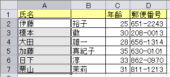 サンプルでは、氏名を姓と名に分けてみます。データを分割する区切り位置に「空白」が必要ですので、