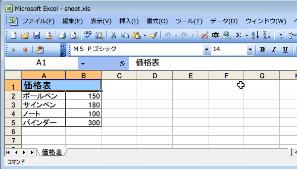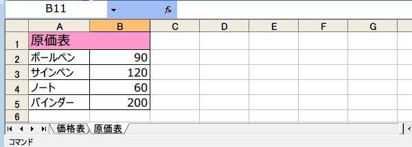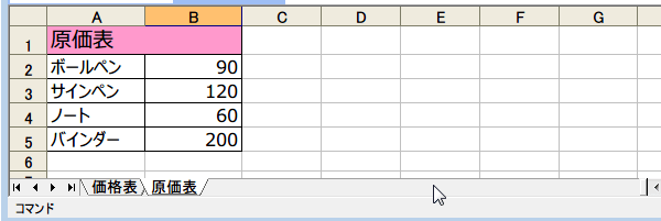 価格表と原価表など、一緒のブックにしておくと便利なのだけれど、
