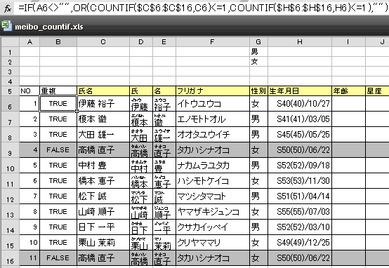 COUNTIFとOR関数で重複を見逃さない技が凝縮された名簿(その2)