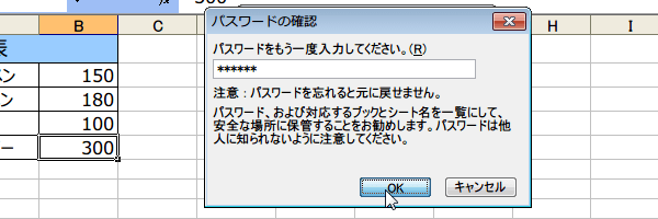 (3)『パスワードの確認』ダイアログボックスが開きますから、
