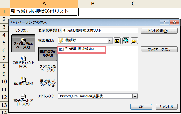 ハイパーリンク設定方法 エクセルの中級技3