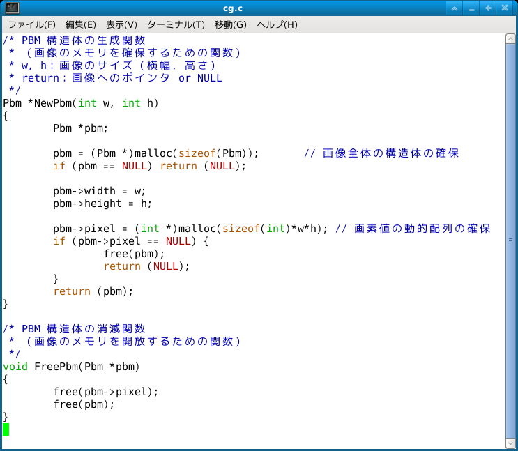 FreePbm(pbm); // 画像データの破棄(メモリ領域の解放)