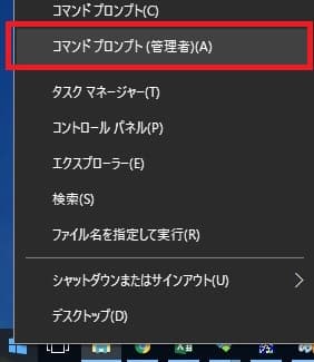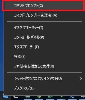 画面左下の「スタートメニュー」を右クリックし、「コマンドプロンプト(C)」を選択して起動する。