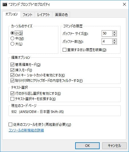 コマンドプロンプトの各種設定項目の項につきましてはWindows10のコマンドプロンプトを対象としております。