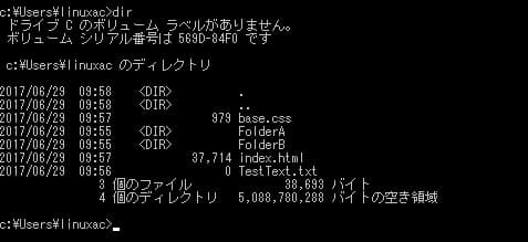 「>」マークの左側は現在のディレクトリ(カレントディレクトリ)を表示している。図の場合だと、「C:\Users\linuxac」がカレントディレクトリという意味だ。