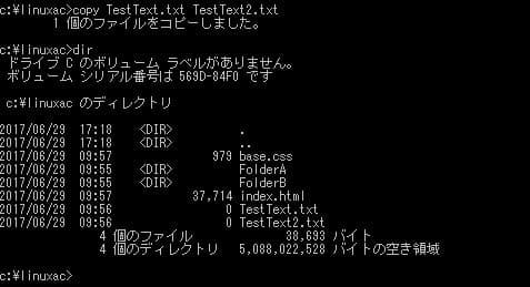 dirコマンドは指定したパスのディレクトリやファイル一覧を表示するコマンドで、「dir」とは「directory」を意味する。