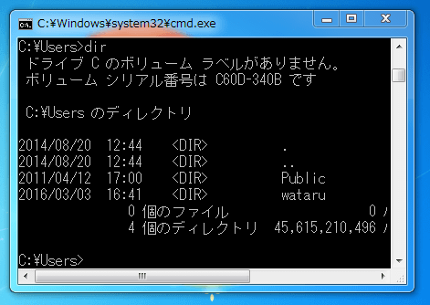 これらを鑑みて、カレントディレクトリであるC:\WINDOWS\system32>がC:¥Users¥ユーザー名>であれば