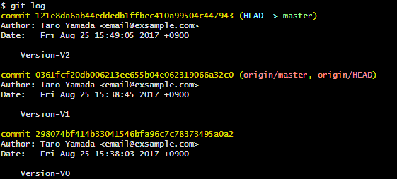 この時点までの変更の記録はローカルもリモートも同じなので、ローカルの変更履歴がリモートの変更履歴でもある。