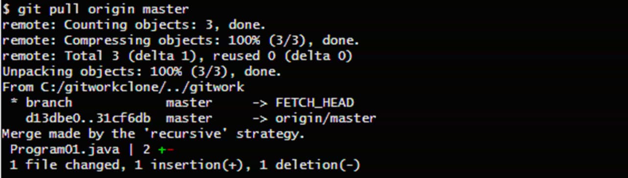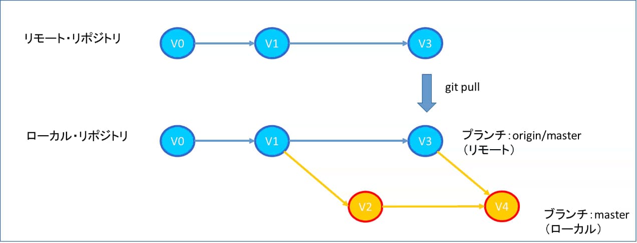 このコマンドが実行されると、リモート・リポジトリからの変更が現在のブランチに組み込まれる。