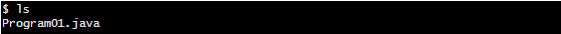 さらに、lsコマンドでディレクトリ内のファイルを書くにしてみると、Program01.javaファイルがあるのが確認できる。