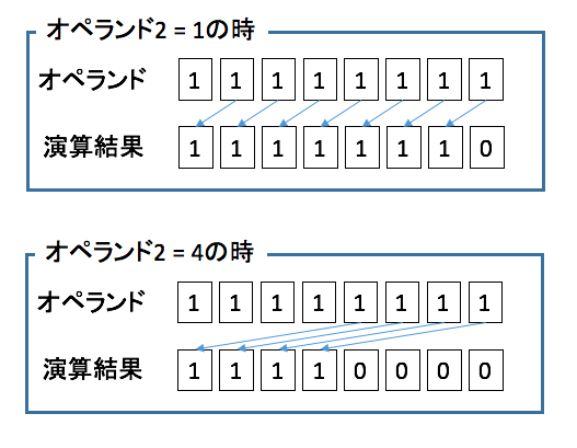 演算結果 = オペランド1 << オペランド2;