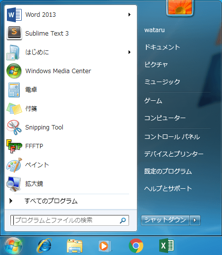 まずスタートボタンをクリックし、コントロールパネルをクリックする。
