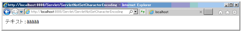 文字コードの設定をしないで入力された情報をそのままレスポンスとして表示させると、文字が正しく表示されない。これは、doPostメソッドでレスポンスを返した結果である。