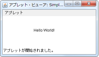 そうすると、アプレットが表示した「Hello World!」が表示される。