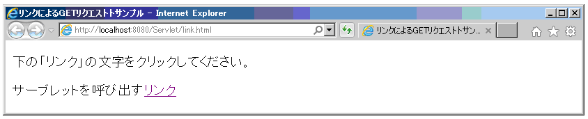 ブラウザにURL:http://localhost:8080/Servlet/link.htmlを入力し、Enterを押す。