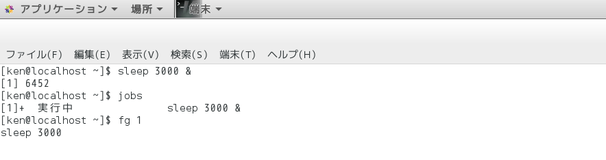 「fg」コマンドは、バックグランドジョブを、フォアグランドジョブに切り替える。jobsで表示された番号を指定すればよい「fg 1」などだ。