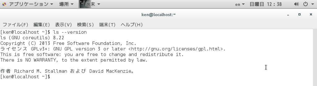 その他多くのコマンドにもバージョンがある。大概はショートオプション「-v」またはロングオプション「--version」とすると十中八九はそのコマンドのバージョン情報を表示してくれる。両方ともつうじない場合は「man」コマンドを参照するとバージョン情報の表示のさせかたが書いてあるはずだ。