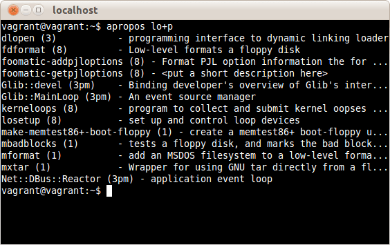 aproposは索引データベースからコマンド名をキーワードで調べるコマンドだ。