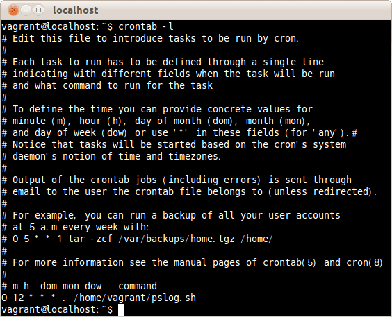 0 12 * * * ./home/vagrant/pslog.sh
