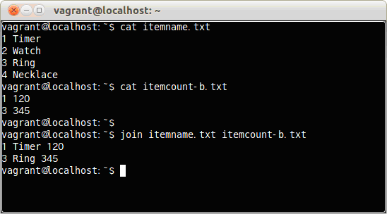 $ join itemname.txt itemcount.txt