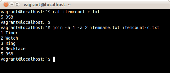 ファイルitemname.txtとitemcount-b.txtを結合し、ファイルitemname.txtのすべての行を表示する場合は、次のコマンドだ。