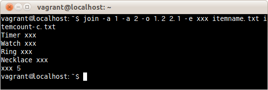$ join --nocheck-order ファイル名1 ファイル名2