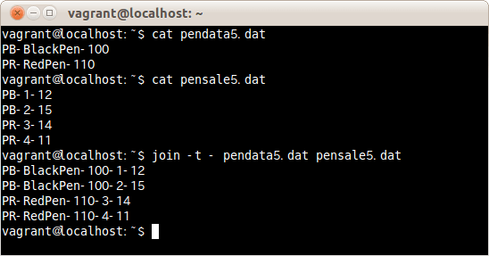 区切り文字を-に指定しファイルpendata5.datとpensale5.datを結合する場合は、次のコマンドだ。