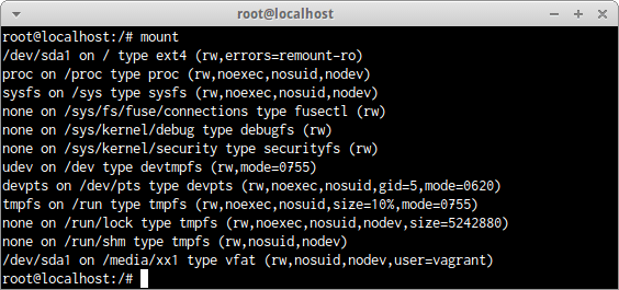 では、USBメモリをコンピュータにセットし、再度mountコマンドを実行してみよう。