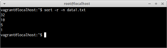 ファイルdata1.txtを数値として降順で並べ替えされた。