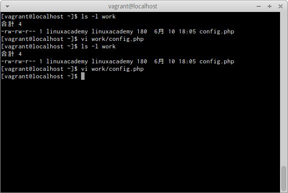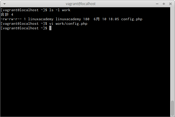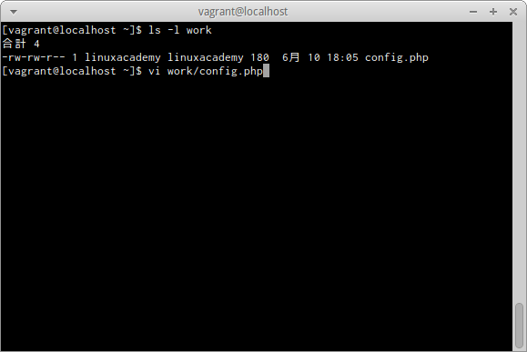 workディレクトリのconfig.phpという名前のファイルをviで開く場合は、次のとおりだ。