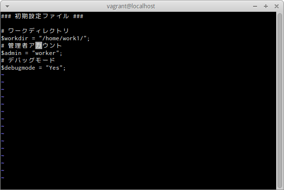 viエディタでworkディレクトリ内のconfig.phpが開かれた。