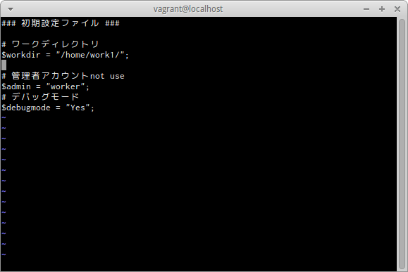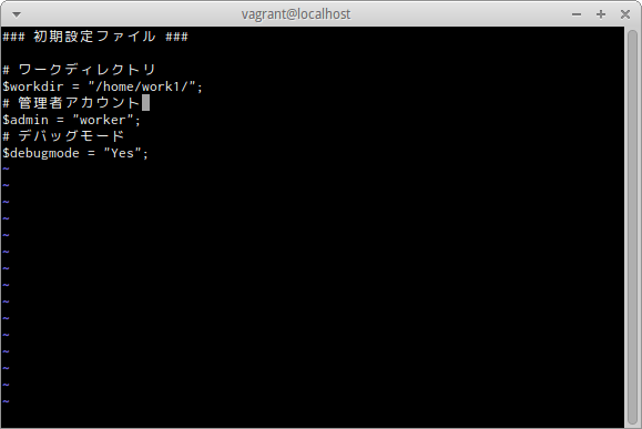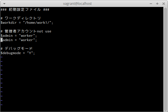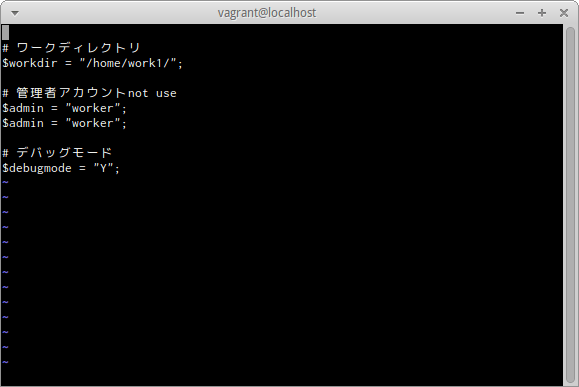 workディレクトリ内のconfig.phpをviエディタで開く。