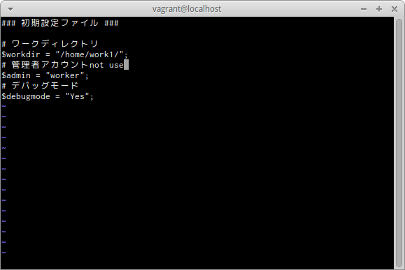 ### 初期設定ファイル ###のどこでも構わないのでカーソルをあわせてddと入力する。