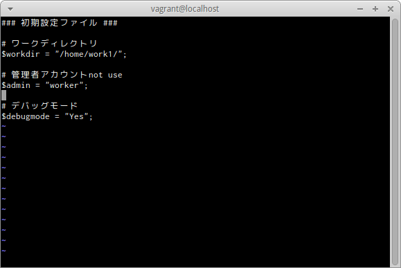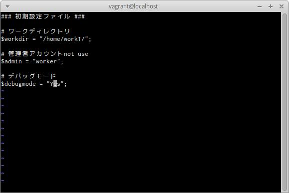 $ echo '# デバッグモード' >>work/config.php