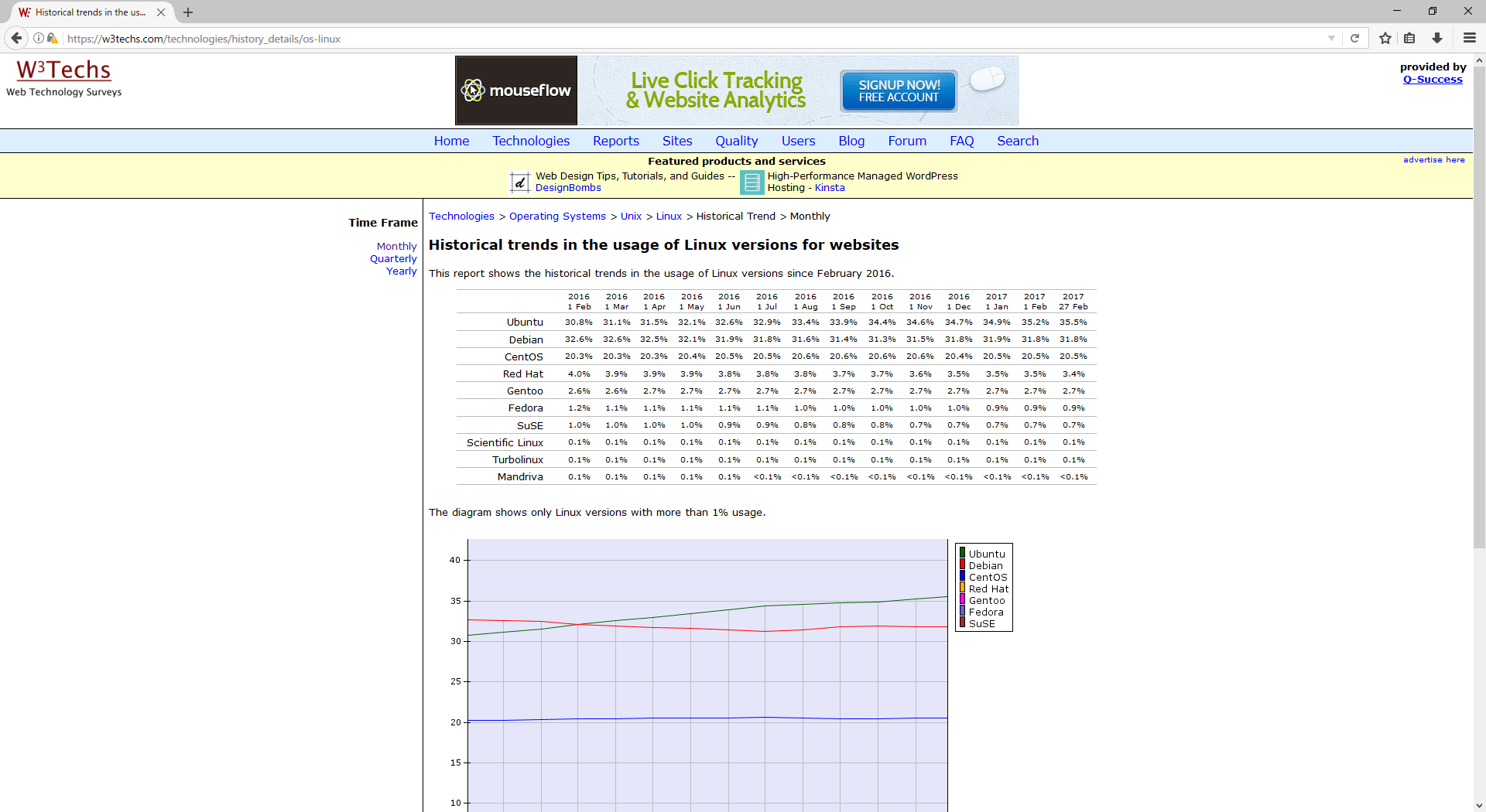 CentOSは常に安定だ。ちなみに4位はRHELで、こちらも安定している。