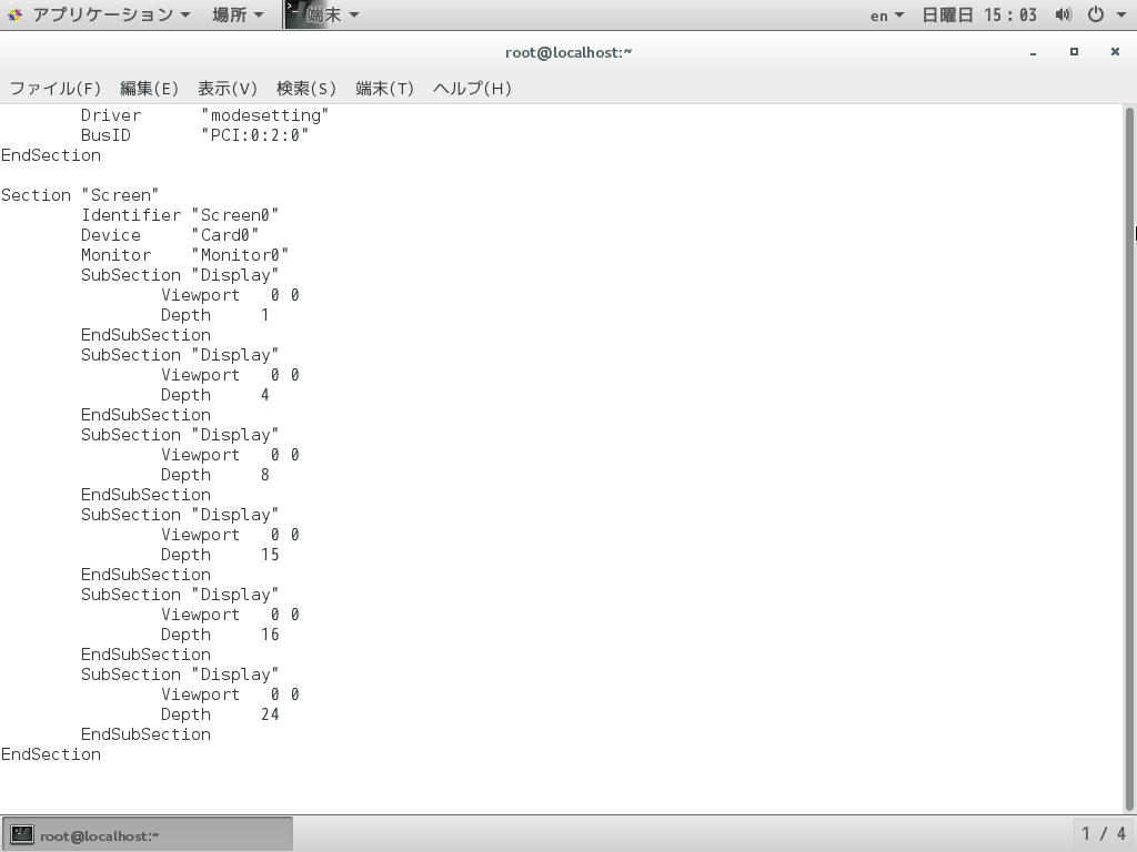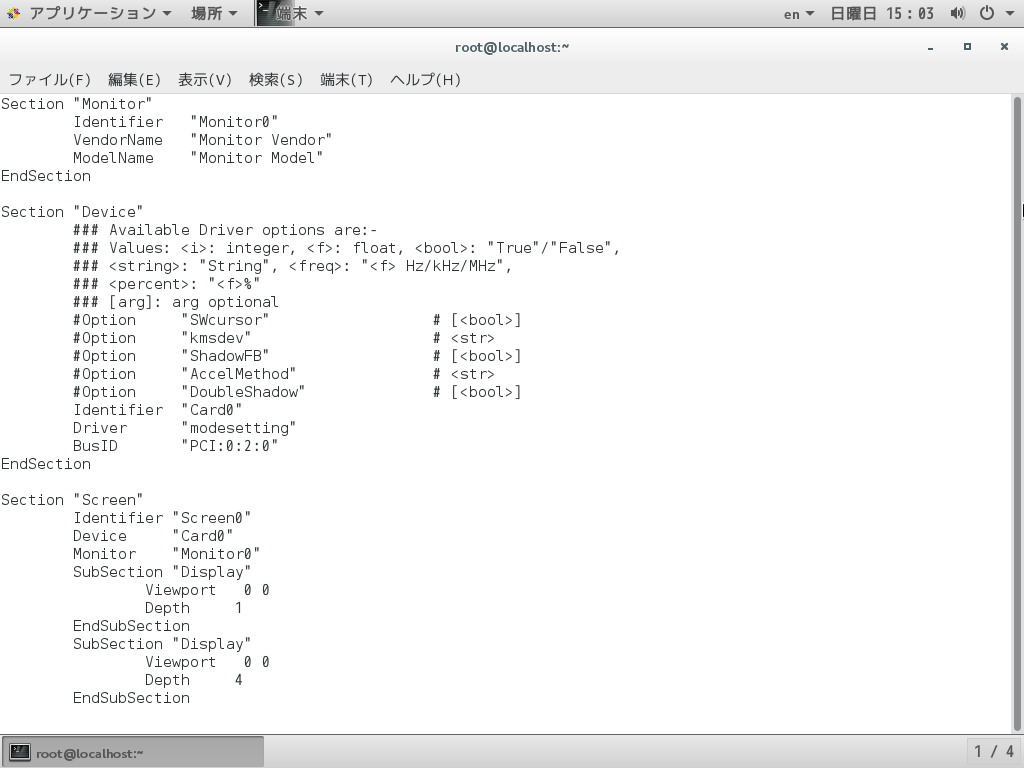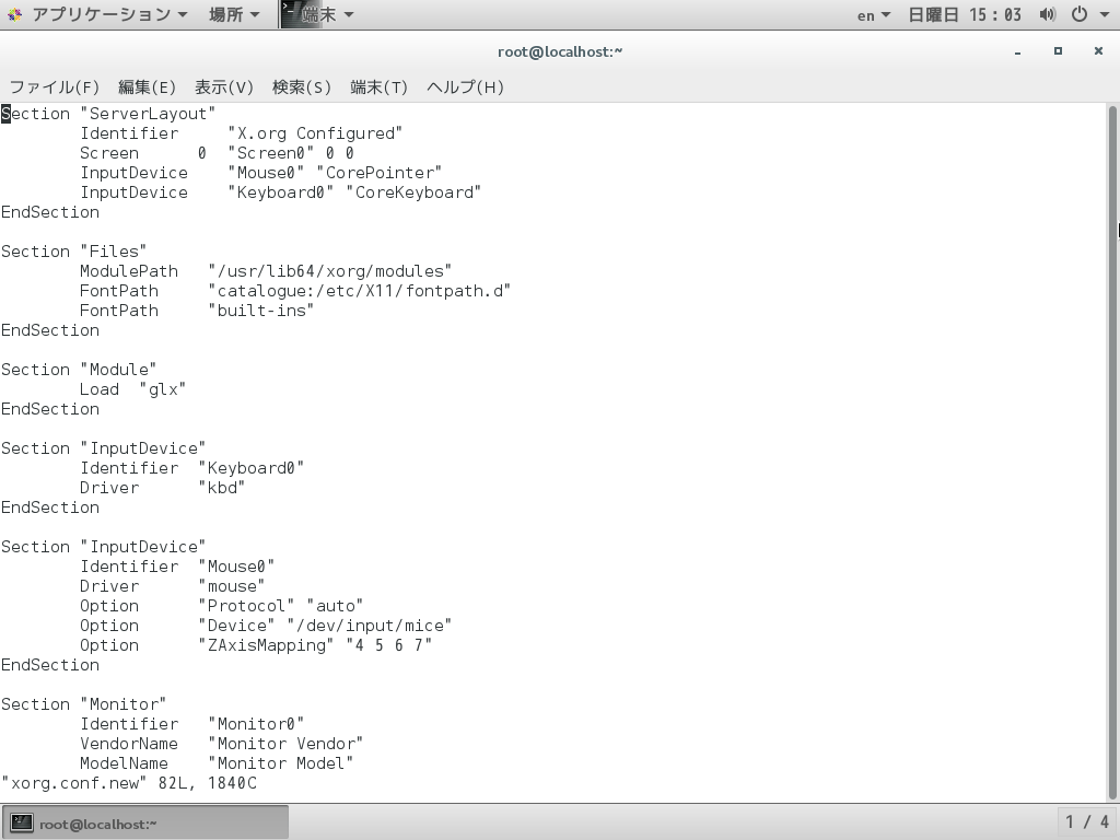 とコマンドを入力する。すると「/root」に「xorg.conf.new」が生成される。しかし必ずしも適切な設定ファイルが作成できるわけではない点に注意しよう。