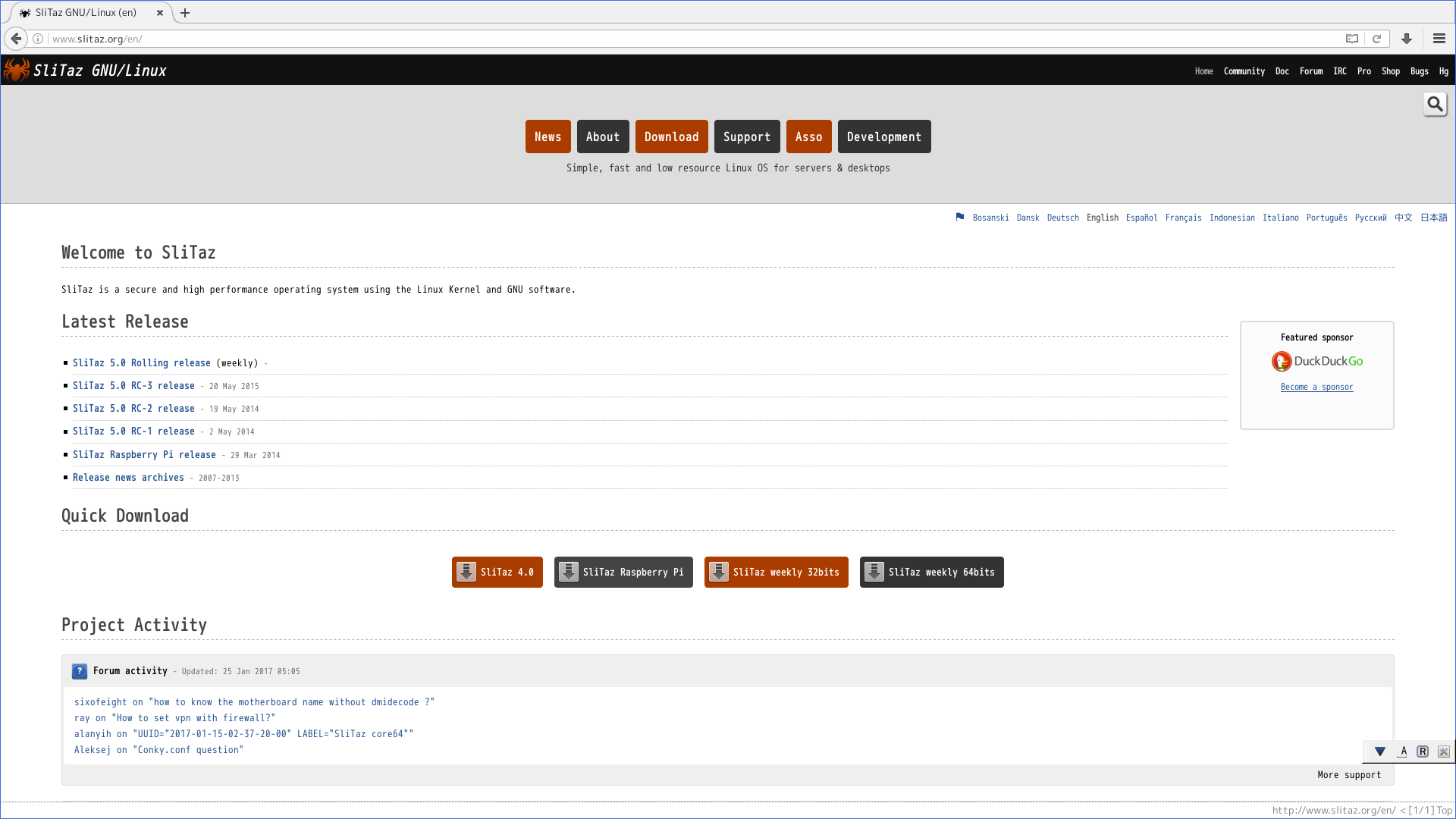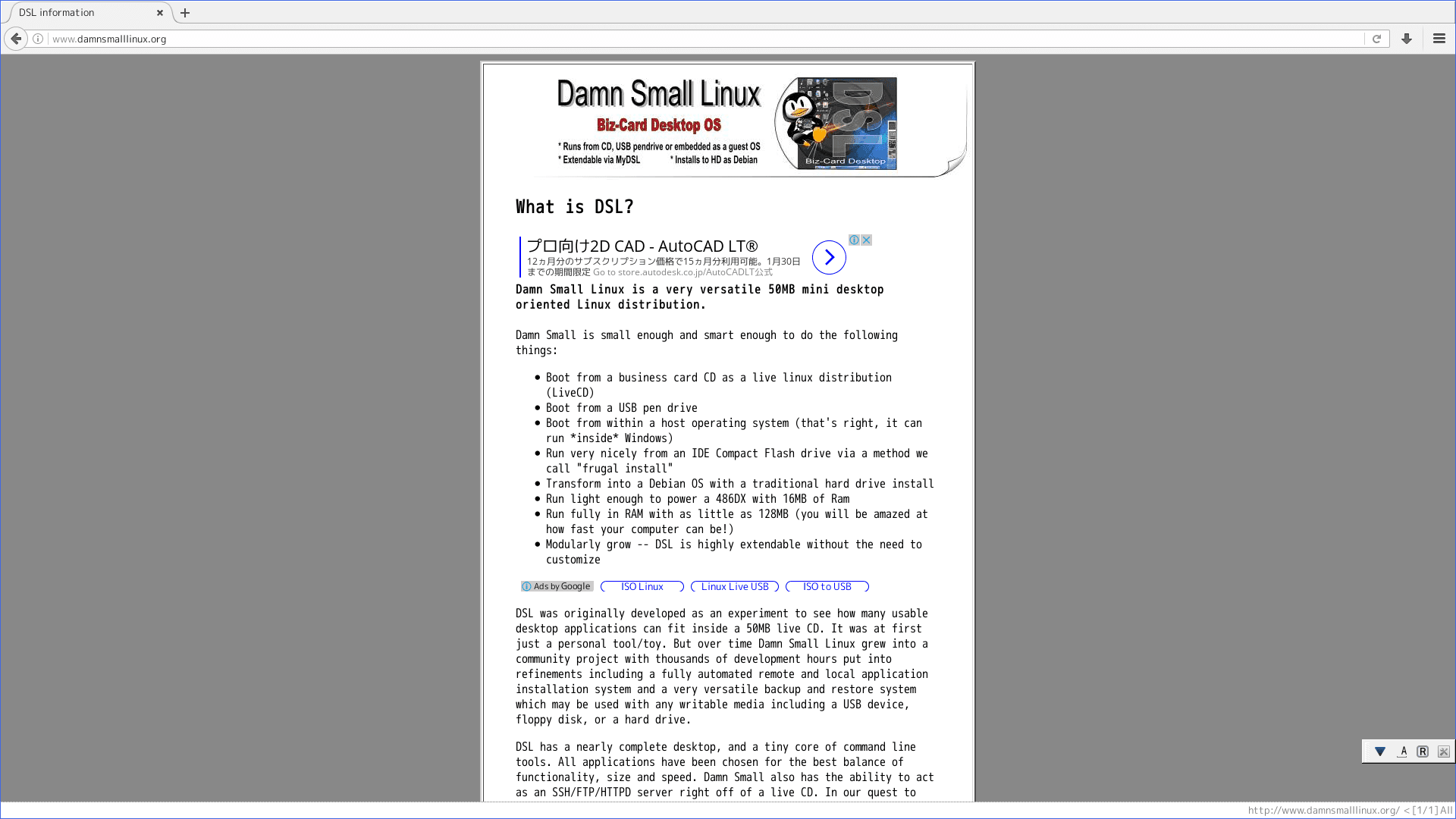こちらも小型軽量ディストリビューションとしては代表的だったが、現在開発が停止している。しかし現在でもWebサイトは生存しており、イメージisoもダウンロード可能となっている。