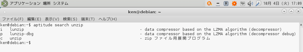 同様の手順で「unzip」を戻してみる。