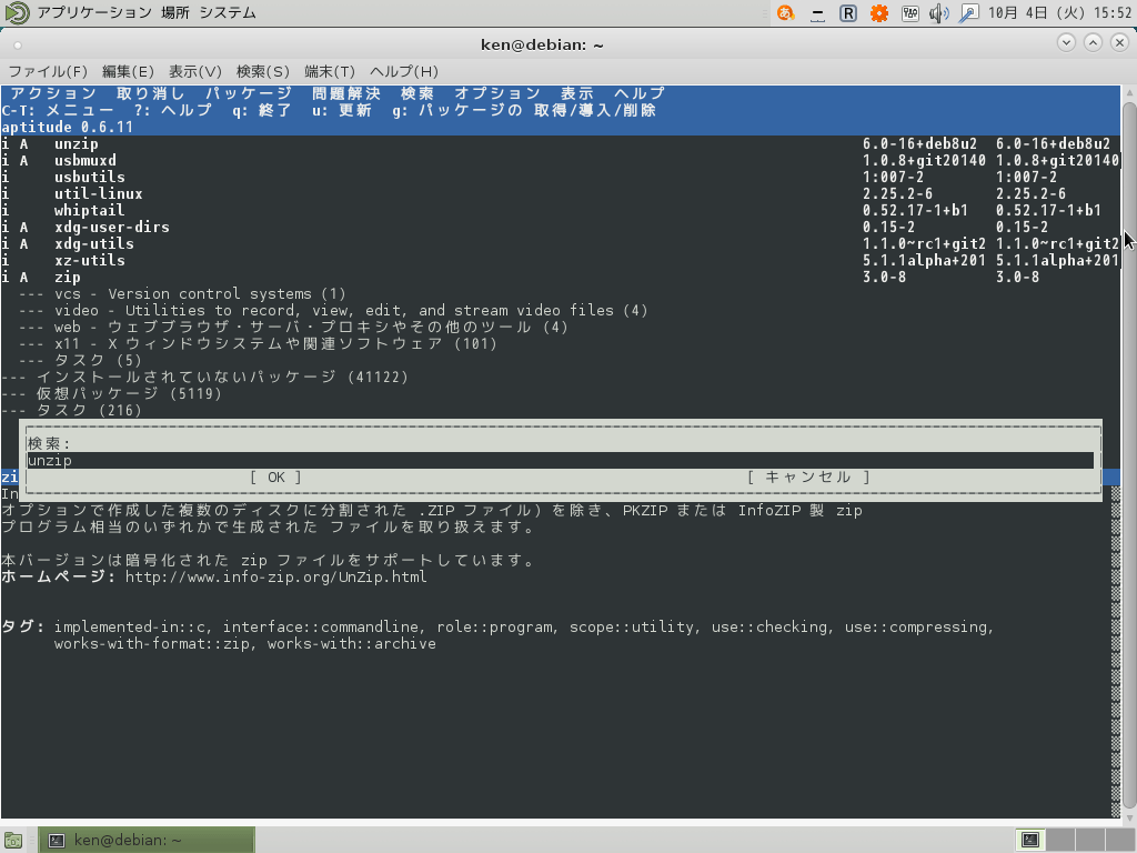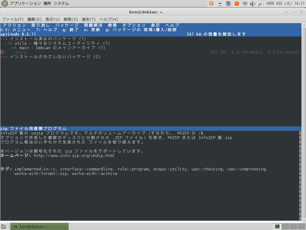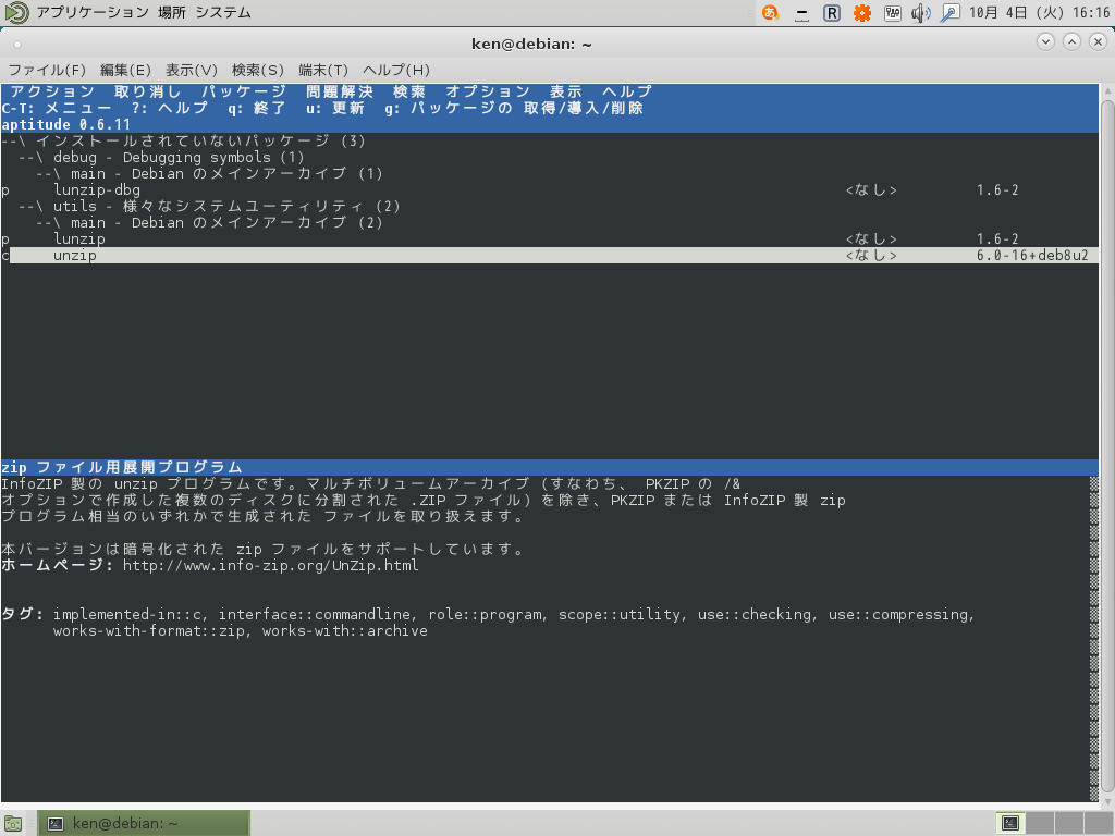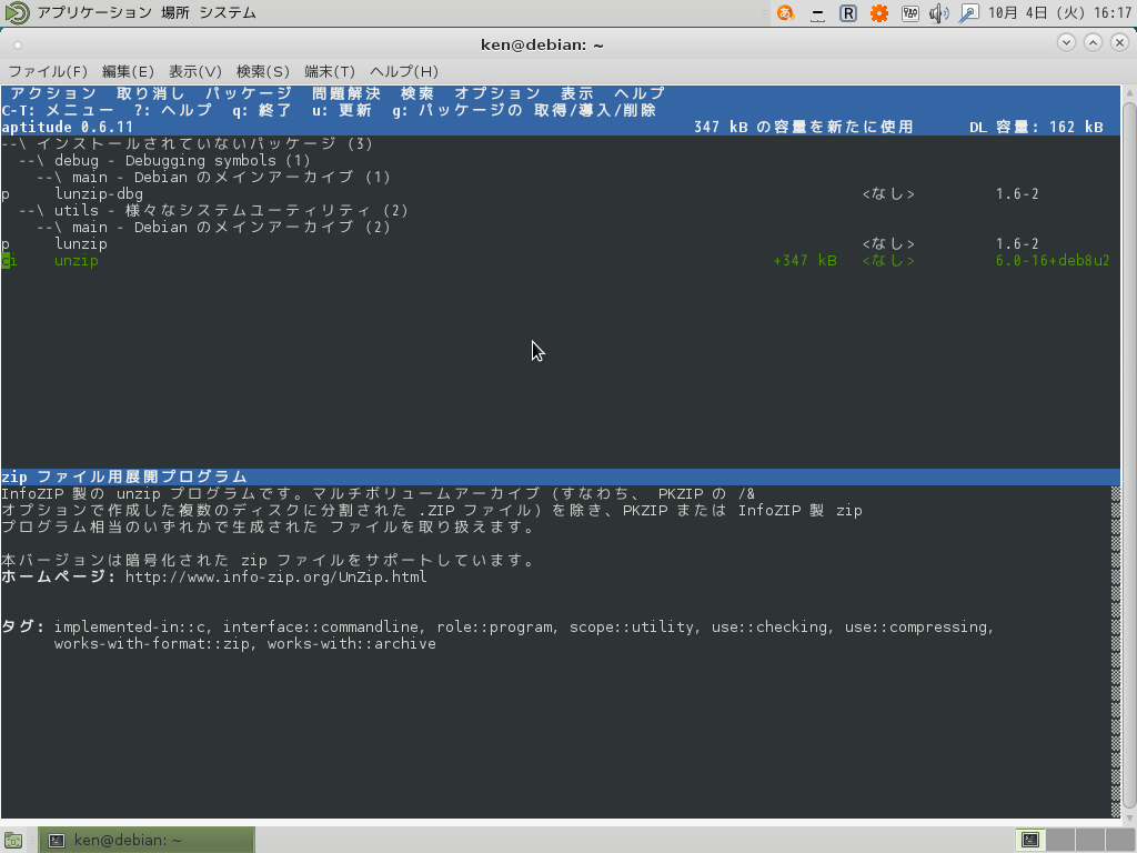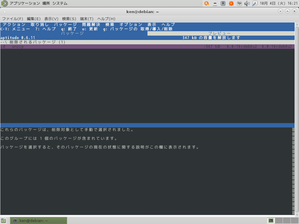 コマンドでaptitudeを使用してみる