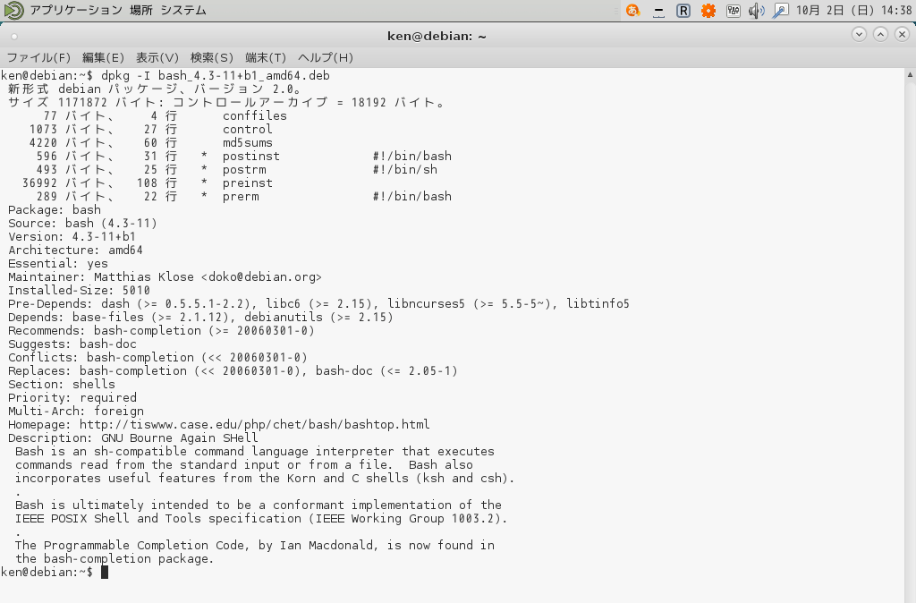 $ dpkg -I <アーカイブ名>