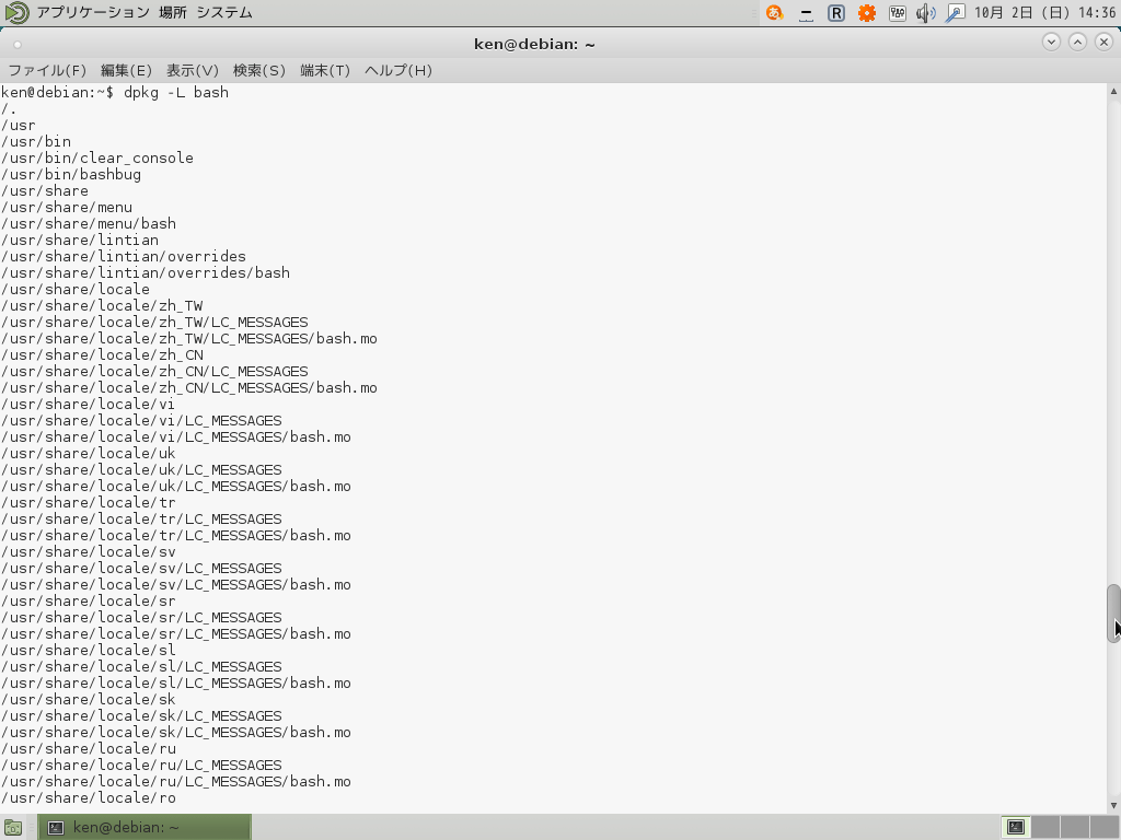 $ dpkg -L <パッケージ名>