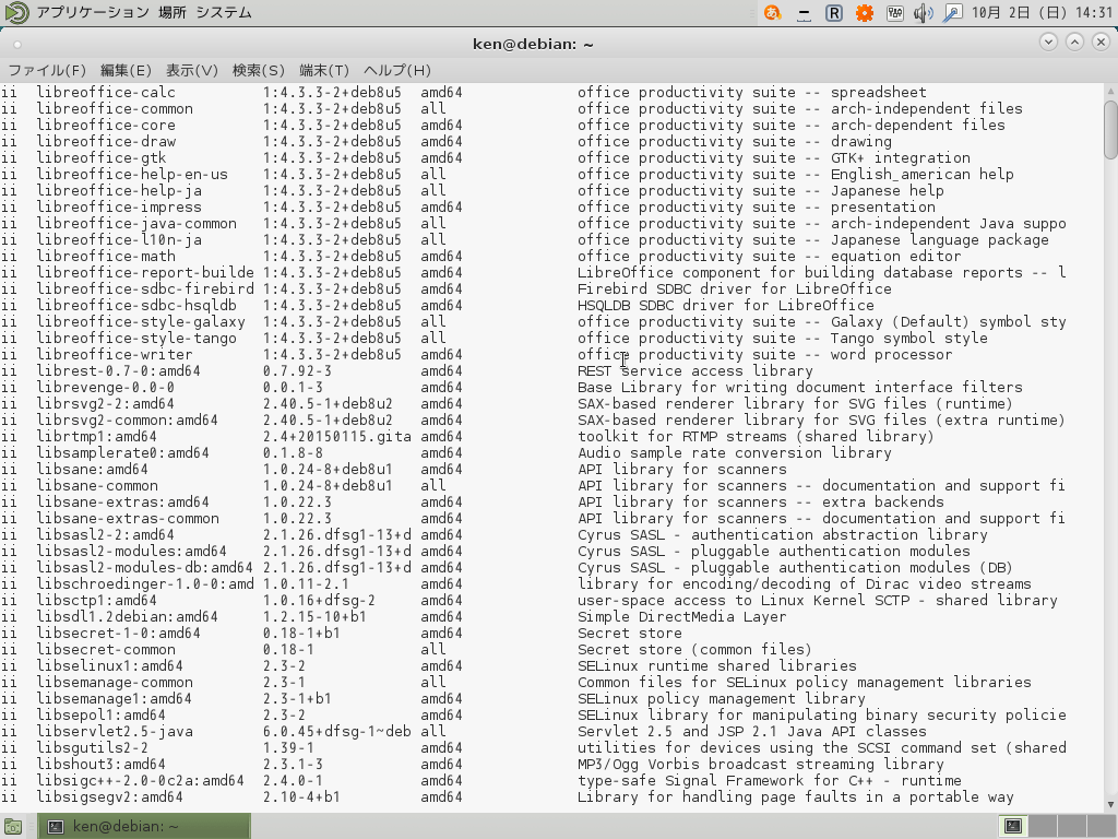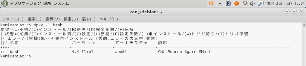 $ dpkg -l もしくはパターン