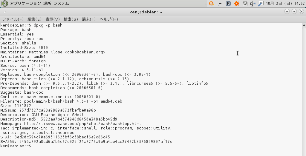 $ dpkg -p <パッケージ名>