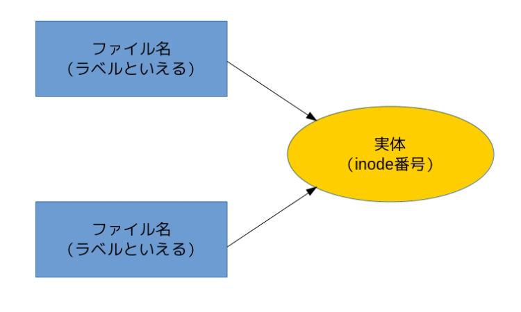 ハードリンクがまさにそれだ。ハードリンクはinodeに複数のファイル名つまりラベルを貼りつける作業となる。