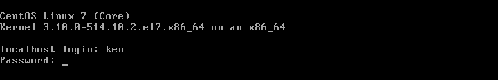 Linuxにログインをするには、ユーザ名とパスワードを入力して、エンターを押すとログイン処理が完了する。なおパスワードは表示されないが、入力は行われているのでそのままパスワードを入力すればよい。